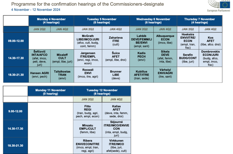 Image is covering the full programme for the confirmation hearings of the Commissioners-designate. Parliament vote on the Commission’s composition Once the confirmation hearings are closed, the Commission President is invited to present the College of Commissioners-designate and its programme during a debate in plenary, following which the European Parliament votes on the Commission's College as a whole.